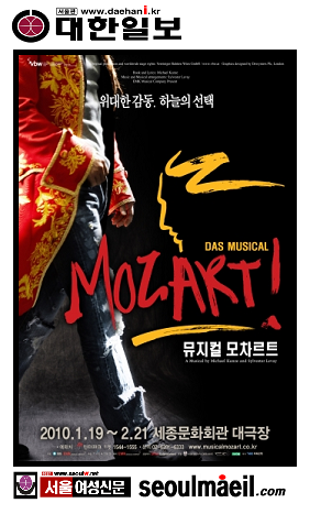 <°ø¿¬È­Á¦> EMK¹ÂÁöÄÃÄÄÆÛ´Ï°¡ 2010³â 1¿ù ¼¼Á¾¹®È­È¸°ü¿¡¼­ ±¹³» ù ¼±º¸ÀÏ ¿À½ºÆ®¸®¾Æ ºñ¿£³ª ¹ÂÁöÄà ¡á¸ðÂ÷¸£Æ®!¡áÀÇ ÁÖÀΰøÀ¸·Î ÀÓŰæ, ¹Ú°ÇÇü, Á¶¼º¸ð°¡ Àü°Ý ij½ºÆÃ µÆ´Ù. ¿©¼º °ü°´ÀÇ °¨¼ºÀ» ÀÚ±ØÇÏ´Â ¸Å·ÂÀ» °¡Áø ÃÖ°íÀÇ ÆËÆä¶ó °¡¼ö °â ¹ÂÁöÄà ¹è¿ì ÀÓŰæ°ú ÃÖ±Ù ¡á»ïÃÑ»ç¡á¿Í ¡á¿þµù½Ì¾î¡á ¹ÂÁöÄ÷Π¶ß°Å¿î »ç¶ûÀ» ¹Þ´Â ¹ÂÁöÄà ½ºÅ¸ ¹Ú°ÇÇü, ±×¸®°í 7Áý À½¹ÝÀ» µé°í ´Ù½Ã µ¹¾Æ¿Â ¹ß¶óµåÀÇ È²ÅÂÀÚ·Î, ¹ÂÁöÄÿ¡ óÀ½ µµÀüÇÏ´Â °¡¼ö Á¶¼º¸ð°¡ ÀÚÀ¯¸¦ °¥¸ÁÇÏ´Â ¡á¸ðÂ÷¸£Æ®!¡áÀÇ ÁÖÀΰø º¼ÇÁ°­ ¿ªÇÒÀ» ¸Ã¾Æ Æø¹ßÀûÀÎ °¡Ã¢·Â°ú ÇÔ²² °¢±â ´Ù¸¥ ¸Å·ÂÀ» ¼±º¸ÀÏ ¿¹Á¤ÀÌ´Ù. ¶ÇÇÑ ÁÖÀΰø ÀÌ»óÀÇ Ä«¸®½º¸¶·Î °ü°´À» ¾ÐµµÇÏ´Â ´ëÁÖ±³ ¿ªÇÒ¿¡ ±¹³» ÃÖ°íÀÇ ¹ÂÁöÄà ¹è¿ì·Î ¼Õ²ÅÈ÷´Â ¹Î¿µ±â¿Í ¡á³ëÆ®¸£´ã µå ÆÄ¸®¡áÀÇ ½ºÅ¸ À±Çü·ÄÀÌ ¸Ã¾Ò´Ù. ¸ðÂ÷¸£Æ®ÀÇ ¾Æ¹öÁö ¿ªÇÒ¿¡ ¹ÂÁöÄðèÀÇ ¾È¼º±â¶ó ºÒ¸®´Â ¼­¹ü¼®ÀÌ Ä³½ºÆÃ µÇ¾ú°í, ¿©ÀÚ ÁÖÀΰøÀ¸·Î ¸ðÂ÷¸£Æ®ÀÇ ´©³ª ¿ª¿¡ ¹èÇØ¼±, ¸ðÂ÷¸£Æ®ÀÇ ¿¬ÀÎ ÀÎ ÄܽºÅºÃ¼ ¿ª¿¡ ¹ÂÁöÄà ¡áµå¸²°ÉÁî¡áÀÇ ÁÖ¿ª Á¤¼±¾Æ µî ÃÊȣȭ ij½ºÆÃÀ» ÀÚ¶ûÇÑ´Ù. ¹ÂÁöÄà ¡á¸ðÂ÷¸£Æ®!¡áÀÇ À¯Èñ¼º ¿¬ÃâÀÚ´Â ¡áÀÛǰ ¼Ó ij¸¯Å͸¦ °¡Àå Àß ¼ÒÈ­ÇÒ ¼ö ÀÖ´Â ½Ç·Â ÀÖ´Â ¹è¿ìµé°ú ÇÔ²²ÇÏ°Ô µÇ¾î ¸Å¿ì ±â»Ú´Ù¡á ¸ç ¡áŬ·¡½Ä Çϸ鼭µµ °­ÇÑ º¸À̽º¸¦ °¡Áö°í ÀÖ´Â À̵éÀº ¡á¸ðÂ÷¸£Æ®!¡á¸¦ ´õ¿í ºû³»°í °ü°´ÀÇ °¨¼ºÀ» ÀÚ±ØÇÏ¸ç ¹«ÇÑÇÑ °¨µ¿À» ¼±¹°ÇÒ °ÍÀÌ´Ù¡á ¶ó°í ¹àÇû´Ù. ¹ÂÁöÄà ¡á¸ðÂ÷¸£Æ®!¡á´Â ¼¼°èÀûÀÎ ±ØÀÛ°¡ ¹ÌÇÏ¿¤ Äïü(Michael Kunze)¿Í ±×·¡¹Ì»ó ¼ö»ó¿¡ ºû³ª´Â ÀÛ°î°¡ ½Çº£½ºÅÍ ¸£º£ÀÌ(Sylvester Levay)°¡ ¸¸µç ¹ÂÁöÄ÷Π¿À½ºÆ®¸®¾Æ ±ØÀåÇùȸ¿¡¼­ ÇØ´ç ±¹°¡ÀÇ ÃÖ°í ¿ª»ç¿Í ±ÇÀ§°¡ ÀÖ´Â ±ØÀå¿¡¼­ÀÇ °ø¿¬¸¸ ¶óÀ̼±½º¸¦ Çã°¡Çϴ Ưº°ÇÑ ÀÛǰÀÌ´Ù. 28ÀÎÁ¶ÀÇ ¿ÀÄɽºÆ®¶ó°¡ ¼±º¸À̴ Ŭ·¡½Ä°ú ¶ôÀÌ À¶ÇÕµÈ À½¾Ç, ÇÑ ÆíÀÇ ¸íÈ­¸¦ º¸´Â µíÇÑ ¹«´ë µðÀÚÀÎ, 500¿©¹úÀÇ È­·ÁÇÑ ÀÇ»ó, ½Ã´ë¸¦ °íÁõÇϴ Ư¼ö °¡¹ß°ú °¡¸é, ¼Òǰ µî ±¹³» ÃÖ°íÀÇ ½ºÅÇÁøÀÌ Âü¿©ÇÏ¿© ¿øÀÛÀ» ¶Ù¾î³Ñ´Â ¿Ï¼ºµµ ³ôÀº ´ëÀÛÀÇ °¨µ¿À» ¼±»ç ÇÒ ¿¹Á¤ÀÌ´Ù. (¹®ÀÇ 02-6391-6333). ¹ÂÁöÄà ¡á¸ðÂ÷¸£Æ®!¡á´Â 1999³â ¿À½ºÆ®¸®¾Æ ºñ¿£³ª(THEATER AN DER WIEN)¿¡¼­ ¼¼°èÃÊ¿¬ ÈÄ µ¶ÀÏ, ½º¿þµ§, ÀϺ», Çë°¡¸®¿¡¼­ °ø¿¬ µÇ¾ú´Ù. ƯÈ÷ ÀϺ»¿¡¼­´Â 8³â°£ ¸ÅÃâ 1À§¸¦ °í¼öÇØ¿Â ¹ÂÁöÄà ¡á¿¤¸®ÀÚº£½º¡áÀÇ ±â·ÏÀ» µ¹ÆÄÇÑ À¯ÀÏÇÑ ¿¹¼ú¼º°ú ´ëÁß¼ºÀ» ¸ðµÎ °®Ãá ÀÛǰÀÌ´Ù. ¿ì¸®°¡ 2010³â óÀ½ ¸¸³ª°Ô µÇ´Â ¿À½ºÆ®¸®¾Æ ¹ÂÁöÄà ¡á¸ðÂ÷¸£Æ®¡á¿ÍÀÇ ¸¸³²ÀÌ ´õ¿í Ưº°ÇÑ ÀÌÀ¯´Â ¿À½ºÆ®¸®¾Æ ±ØÀå Çùȸ°¡ ÀÚ±¹ÀÇ ¹ÂÁöÄÃÀÌ ÇØ¿Ü¿¡¼­ °ø¿¬µÇ¾î Áö´Â °ÍÀ» ¾ö°ÝÈ÷ Á¦ÇÑÇϰí ÀÖ¾î ÇØ´ç ±¹°¡ÀÇ ÃÖ°í ¿ª»ç¿Í ±ÇÀ§°¡ ÀÖ´Â ±ØÀå¿¡¼­ÀÇ °ø¿¬¸¸ ¶óÀ̼±½º¸¦ Çã°¡Çϱ⠶§¹®ÀÌ´Ù. ÀÌ·± Á¦ÇÑÀû Á¶°Ç ¼Ó¿¡ ¿Ã·ÁÁø ÀϺ» Á¦±¹±ØÀå °ø¿¬Àº õ¸¸ °ü°´ ÀÌ»ó °ü¶÷, 97%ÀÇ À¯·á°´¼®Á¡À¯À² À̶ó´Â ¸Å¿ì °æÀÌ·Î¿î ±â·ÏÀ» ¼¼¿î¹Ù ÀÖ´Ù. ¹ÂÁöÄðè´Â 2009³â¿¡ À̾î 2010³â¿¡µµ ÀïÀïÇÑ ÇØ¿Ü ÀÛǰµéÀÌ °è¼Ó ¼±º¸ÀÏ ¿¹Á¤ÀÌ´Ù. ±× Áß¿¡¼­ ¼¼Á¾¹®È­È¸°üÀÌ ¼±ÅÃÇÑ ÀÛǰÀº ¹ÂÁöÄà ¡á¸ðÂ÷¸£Æ®!¡áÀÌ´Ù. ±×µ¿¾È ¼¼Á¾¹®È­È¸°ü À¯·¡¿¡ ¾ø´ø ´ÜÀÏÀÛǰÀ¸·Î´Â ÃÖÀå±â°£ ÀÎ 40ÀÏ µ¿¾È ¸¸³ª°Ô µÇ´Â ¹ÂÁöÄà ¡á¸ðÂ÷¸£Æ®!¡á´Â Ŭ·¡½Ä »Ó¸¸ ¾Æ´Ï¶ó ´Ù¾çÇÑ À帣ÀÇ ¿¹¼úÀûÀÎ ¿ä¼ÒµéÀÌ Àß Ç¥ÇöµÈ °íǰ°Ý ¹ÂÁöÄÃÀÌ´Ù. ¹à°í À¯ÄèÇÑ ÀÛǰ°ú´Â ¶Ç´Ù¸¥ ´ëÇü ¹ÂÁöÄÃÀÌ ÁÖ´Â ±× Ưº°ÇÑ °¨µ¿À» ±¹³» ÃÖ°íÀÇ ±ÇÀ§¸¦ ÀÚ¶ûÇÏ´Â ¼¼Á¾¹®È­È¸°ü¿¡¼­ ÇÑÃþ ´õ ³ôÀº ǰ°ÝÀÇ ÀÛǰÀ¸·Î ¸¸³¯ ¼ö ÀÖ´Ù. µ¶ÀÏ¿¡¼­ °¡Àå À¯¸íÇÑ ÀÛ°î°¡ÀÌÀÚ ¼¼°èÀûÀÎ ±ØÀÛ°¡·Î À¯¸íÇÑ ¹ÌÇÏ¿¤ Äïü (Michael Kunze) °¡ ´ëº»°ú Àۻ縦 ¸Ã¾Æ ªÁö¸¸ ±¼°î ¸¹¾Ò´ø ¸ðÂ÷¸£Æ®ÀÇ ÀλýÀ» ÀÇÁöÀÇ ÁÖüÀÎ º¼ÇÁ°­(Wolfgang)°ú Àç´ÉÀÇ ±Ù°£ÀÎ ¾Æ¸¶µ¥(Amade)·Î ºÐ¸®½ÃÄÑ ÃµÀç À½¾Ç°¡ÀÇ Àλý°ú ±×¸¦ µÑ·¯½Ñ »ç¶÷µéÀÇ À̾߱⸦ ¿ªµ¿Àû °¥µî±¸Á¶·Î Ç®¾î³ª°£ Ź¿ùÇÑ ±¸¼º·ÂÀÌ µ¸º¸ÀÌ´Â ÀÛǰÀÌ´Ù. ±¹³» Àß ¾Ë·ÁÁø ¸ðÂ÷¸£Æ®ÀÇ ¿µÈ­ ¡á¾Æ¸¶µ¥¿ì½º¡á°¡ õÀç À½¾Ç°¡ ¸ðÂ÷¸£Æ®ÀÇ ¶óÀ̹úÀÌÀÚ ±×ÀÇ Àç´ÉÀ» ÁúÅõÇÏ´Â »ì¸®¿¡¸£¿¡°Ô Æ÷Ä¿½º°¡ ¸ÂÃçÁ³´Ù¸é ¹ÂÁöÄà ¡á¸ðÂ÷¸£Æ®!¡á´Â Àΰ£ ¸ðÂ÷¸£Æ®ÀÇ »ç¶û°ú ÀÚÀ¯¿¡ ´ëÇÑ °¥¸Á, ±×¸®°í ÁÖº¯ Àι°·Î ÀÚ½Å